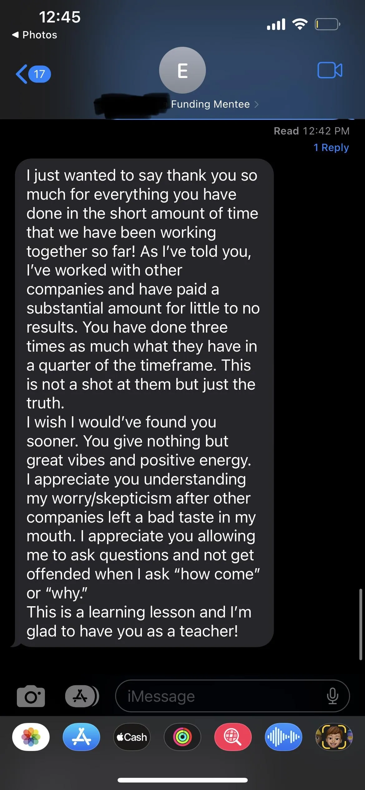 When we met Edshaudria she was working with another funding company that produced no results. She was at a point where the funding company was just applying to apply and racking up a high amount of inquiries on her credit report. She put her trust in me and we created a plan of attack to help her fulfill her funding goals.
